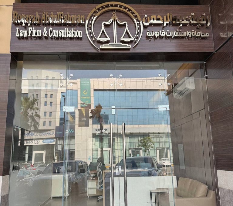 مكتب المحامية رقيه عبدالرحمن مكتب محاماة مرخص يقدم جميع أعمال المحاماة والاستشارات القانونية، بخبرة واسعة ومعرفة دقيقة بالأنظمة والقوانين المعمول بها في المملكة.